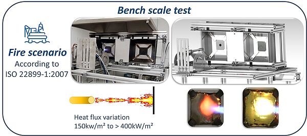 Ce banc est conçu pour évaluer la résistance au feu de matériaux composites, revêtements, isolants ou systèmes multicouches dans des conditions proches des incendies en environnements extrêmes. Il est couramment utilisé pour :